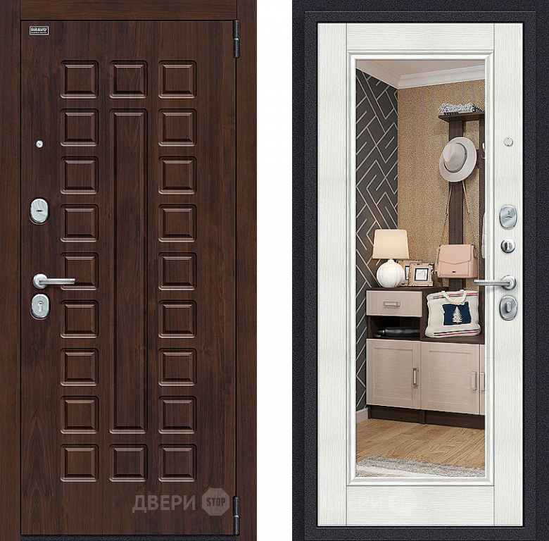 Входная металлическая Дверь Bravo Оптим Урбан с зеркалом Bianco Veralinga в Лосино-Петровский 860х2050 мм