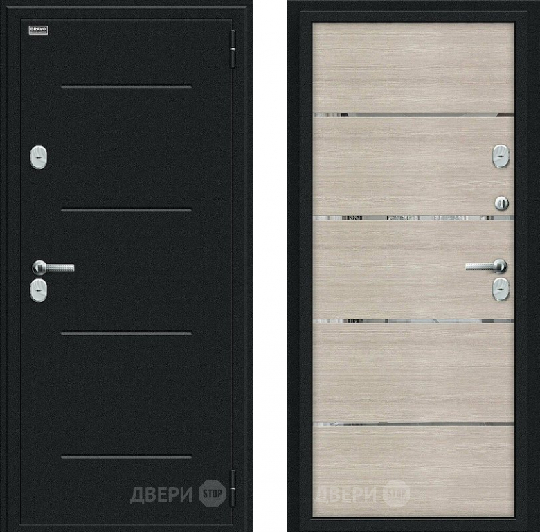Входная металлическая Дверь Bravo Thermo Лайн Букле черное/Cappuccino Veralinga в Лосино-Петровский 860х2050 мм