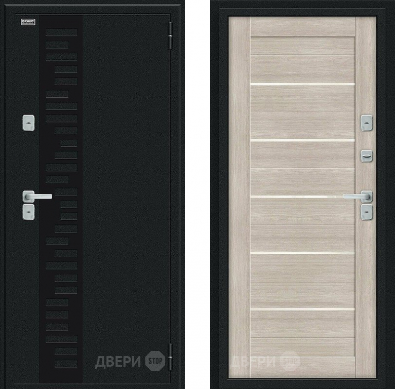 Входная металлическая Дверь Bravo Thermo Техно Декор Букле черное/Cappuccino Veralinga в Лосино-Петровский 860х2050 мм