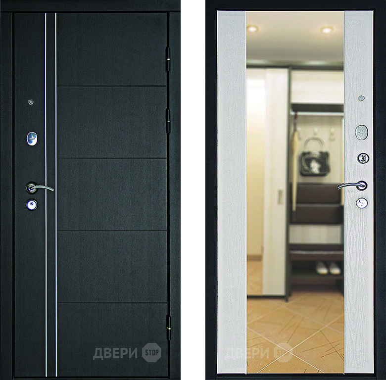 Входная металлическая Дверь Дверной Континент Тепло - Люкс Зеркало Беленый дуб в Лосино-Петровский 860х2050 мм