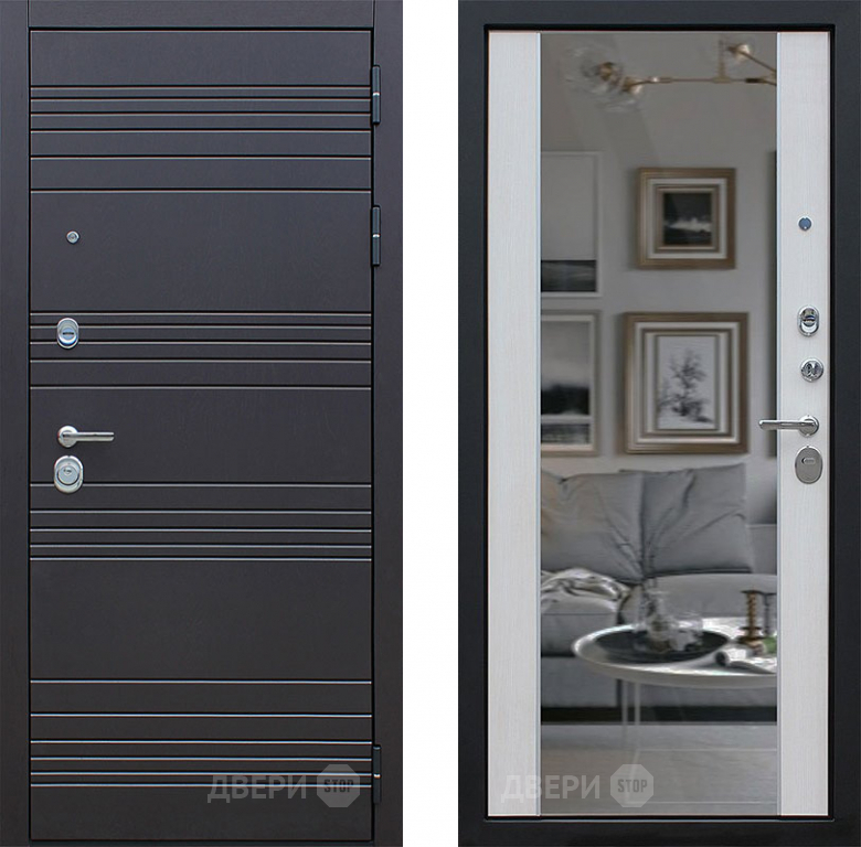 Входная металлическая Дверь АСД Дуэт с зеркалом Лиственница белая в Лосино-Петровский 860х2050 мм
