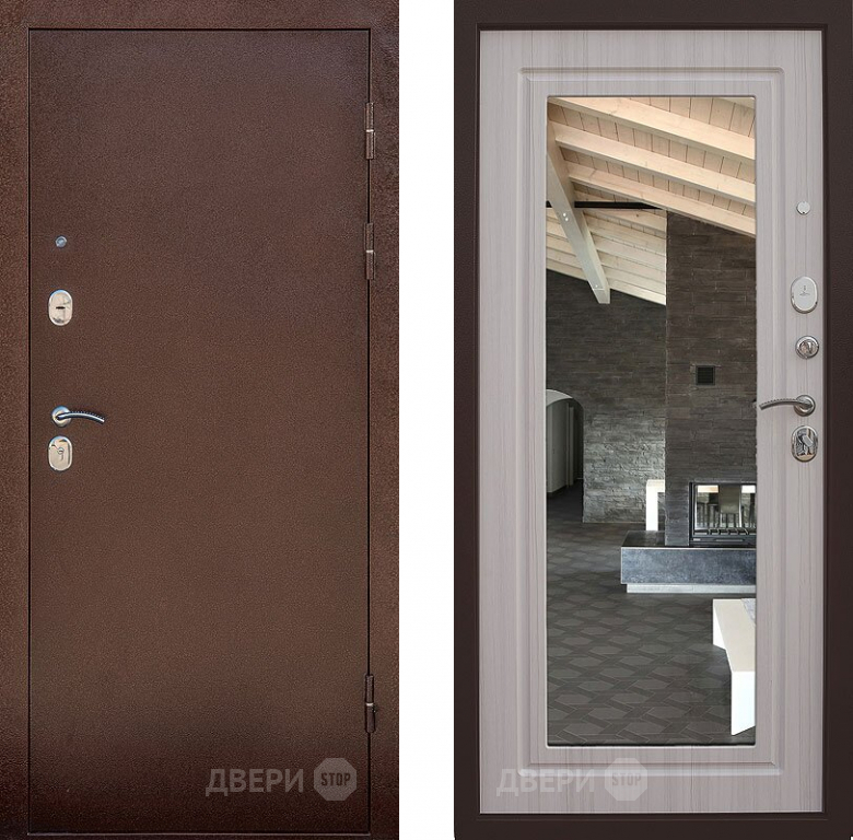 Входная металлическая Дверь Снедо Сити Эш Вайт с зеркалом в Лосино-Петровский 860х2050 мм