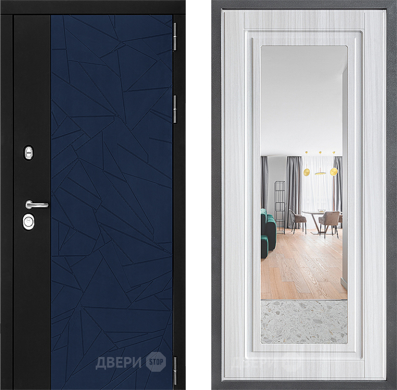 Входная Дверь Дверной континент ДК-9 ФЛЗ Зеркало Сандал белый 860x2050 мм