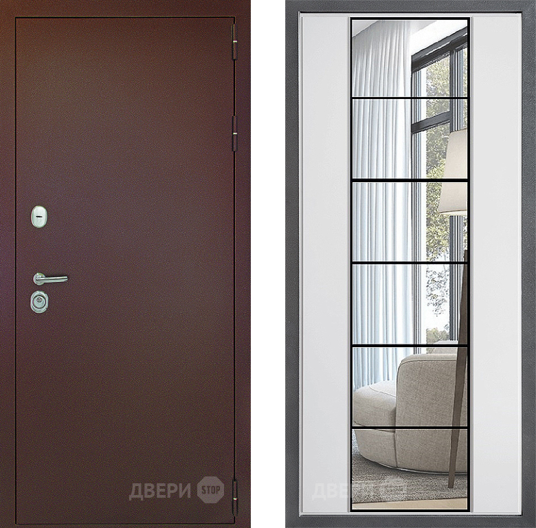 Входная Дверь Дверной континент Рубикон Медь Дизайн ФЛЗ-2 Зеркало Белый софт 860x2050 мм