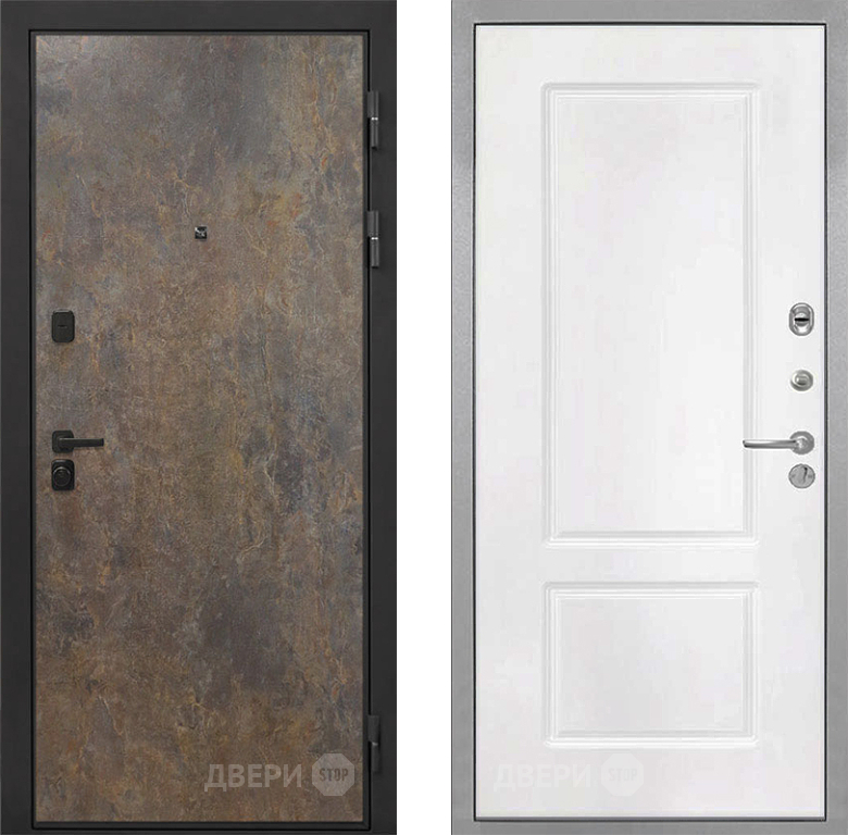 Входная Дверь Интекрон (INTECRON) Профит Black Гранж КВ-2 Белый матовый 860x2050 мм