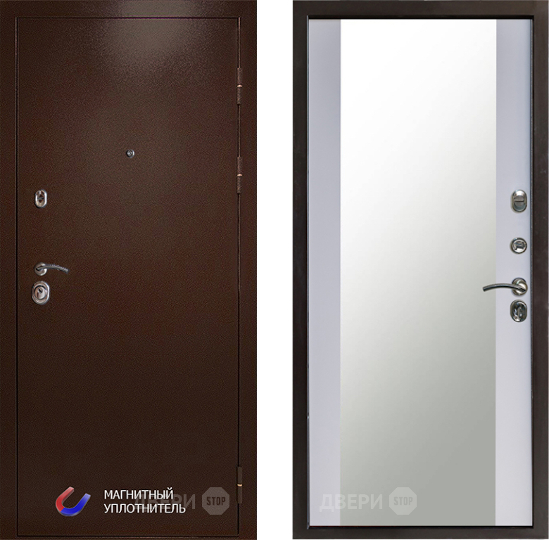 Входная Дверь Престиж Медь Зеркало Белый софт 860x2050 мм