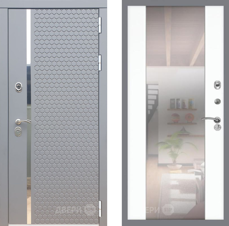 Входная Дверь Рекс (REX) 24 СБ-16 Зеркало Силк Сноу 960x2050 мм