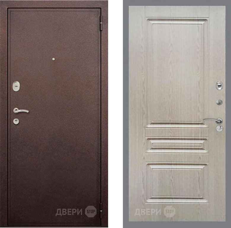 Входная Дверь Рекс (REX) 2 Медный Антик FL-243 Беленый дуб 860x2050 мм