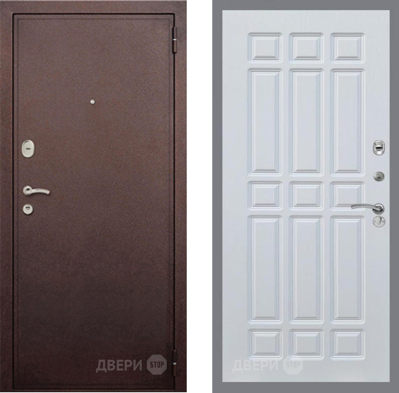 Входная Дверь Рекс (REX) 2 Медный Антик FL-33 Белый ясень 960x2050 мм