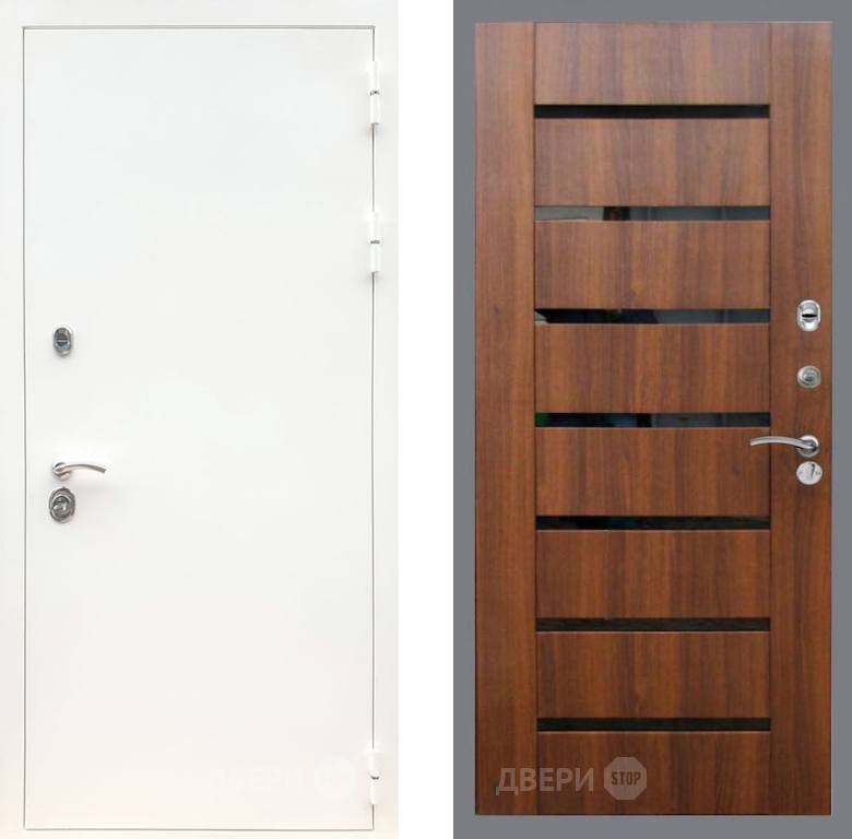 Входная Дверь Рекс (REX) 5 Белая Шагрень СБ-14 стекло черное Орех бренди 960x2050 мм