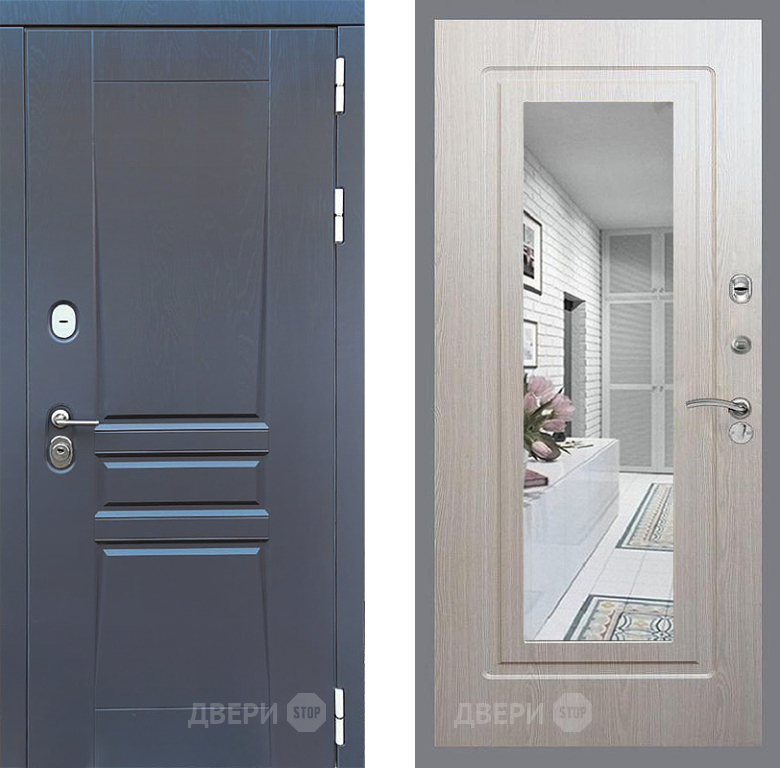 Входная Дверь Стоп ПЛАТИНУМ Зеркало ФЛ-120 Беленый дуб 960x2050 мм