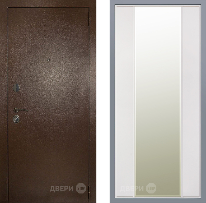 Входная Дверь Заводские двери Эталон 3к антик медь Зеркало Макси Белый матовый 860x2050 мм