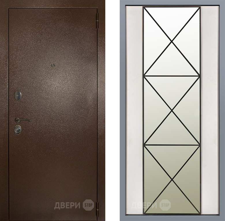 Входная Дверь Заводские двери Эталон 3к антик медь Зеркало Перфекто Структурное дерево 860x2050 мм