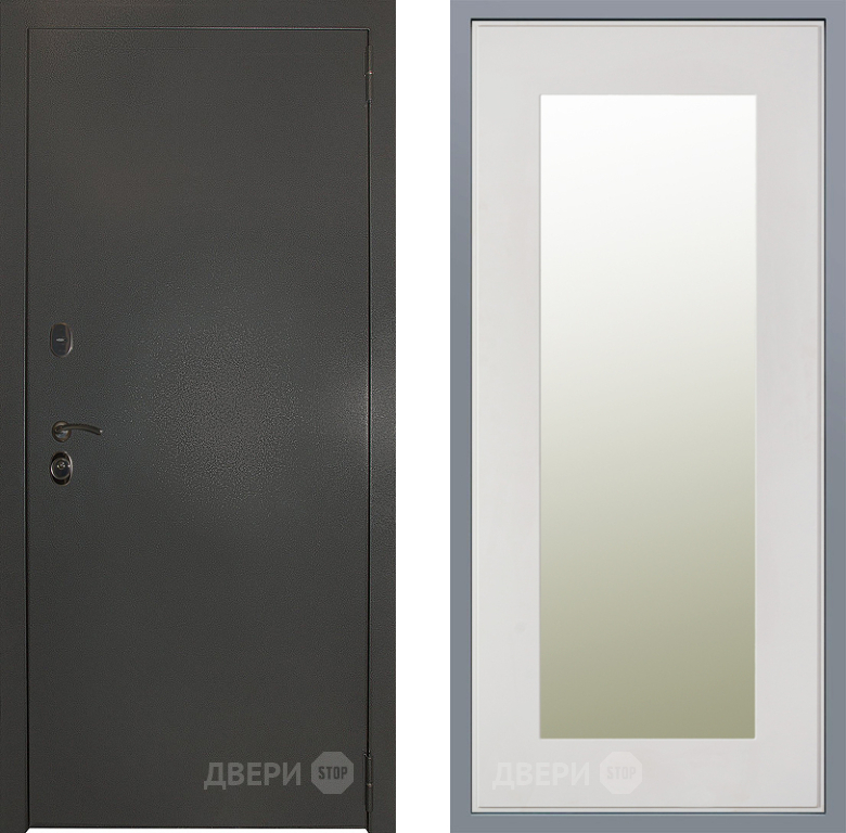 Входная Дверь Заводские двери Эталон 3к антик серебро Зеркало Модерн Белый софт 860x2050 мм
